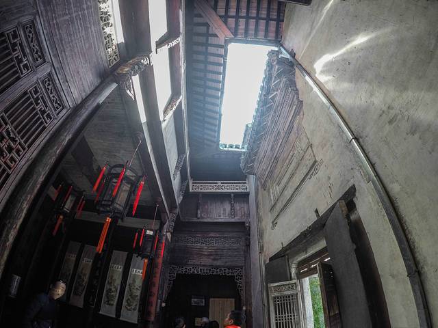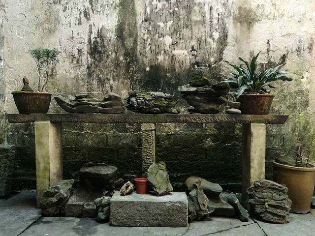 小巷子曲曲折折,四通八达,刚开始还跟着解说员节走,看着灰黑的墙壁,墨绿色青苔从墙根往上渗透,漫不经心的听着门栏雕花的故事,一不留神就跟丢了人群,不一会却又遇到另一群人,听到相似的故事从扩音器里面传出。。。。索性就随便在村里游荡,凭着自己的想象去猜测每一扇门每一间屋子的故事。我记得走进一间祠堂,一个老人热情的向游客讲述自己家族和这间宗祠的事迹,显然这些历史都让她感到自豪。