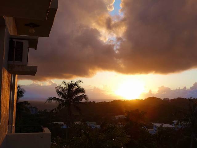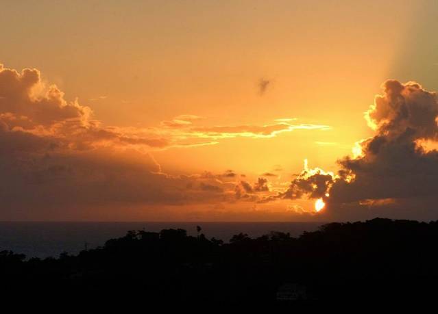 朝阳冲破厚重的云层,在东方的海面升起,这是清晨不可错过这良辰美景。照片摄于酒店房间的平台。
