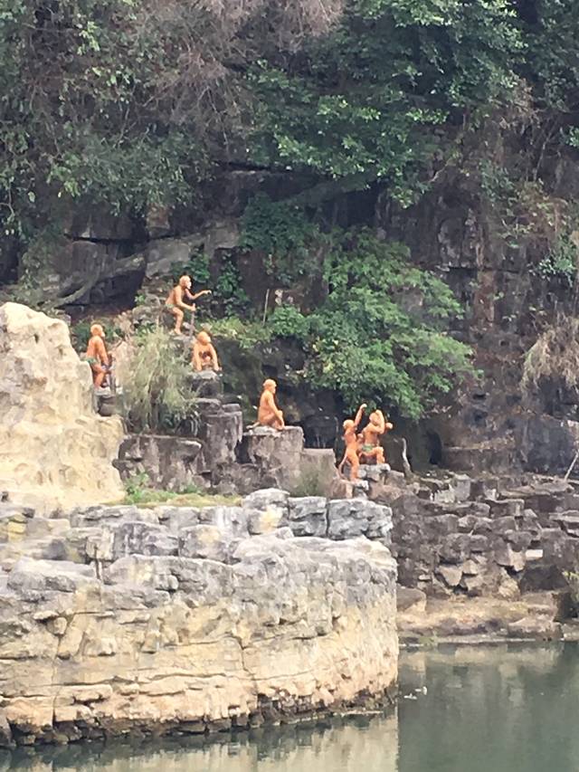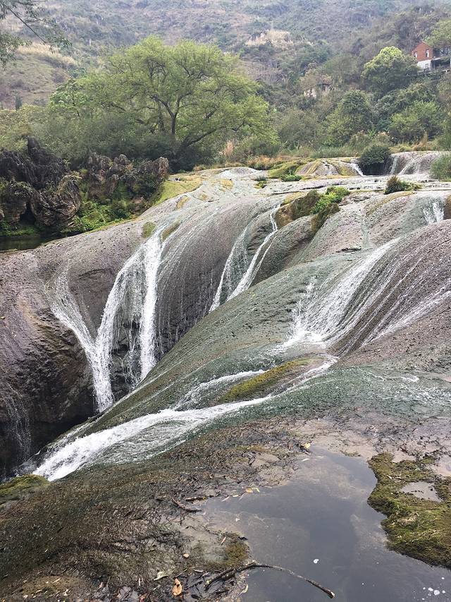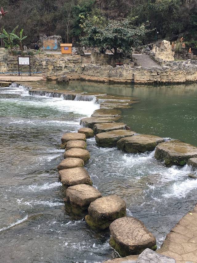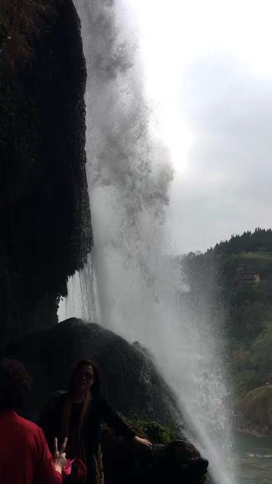 黄果树瀑布绝对值得去,虽然现在是淡季,水流不是很大,但也特别壮观,刚进景区门口就能听见瀑布的声音。门口有卖雨衣的,幸好没买,这个时候进水帘洞没有穿雨衣的。买完票一定要一起买观光车票,因为三个景区之间离的很远,必须要坐观光车。去买票的时候门口有个穿保安衣服的人特别严肃的对我说买完票出来到这买观光车票。千万不要被骗了,景区窗口可以买票的,外面都是私人的车。第一个景区是徒坡塘,有个小瀑布,还有西游记的塑像