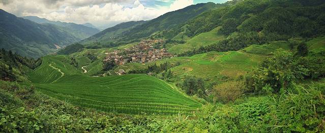 第五天上午从桂林赶往龙胜,抵达龙脊梯田村口的时候已经是中午。我们定了青旅,在山上,于是开始了痛苦的登山。