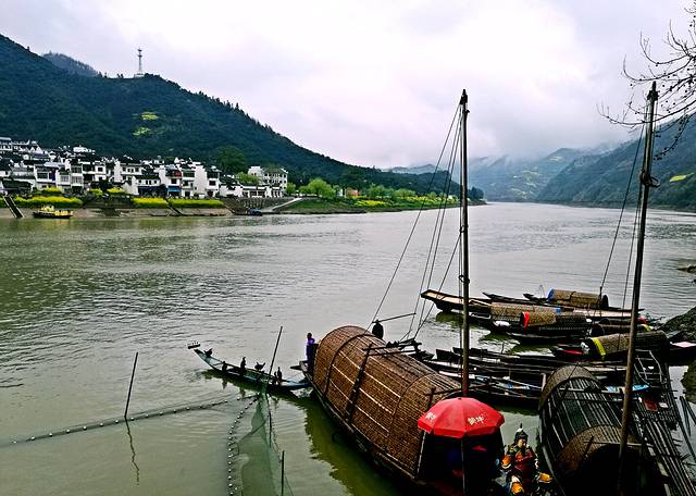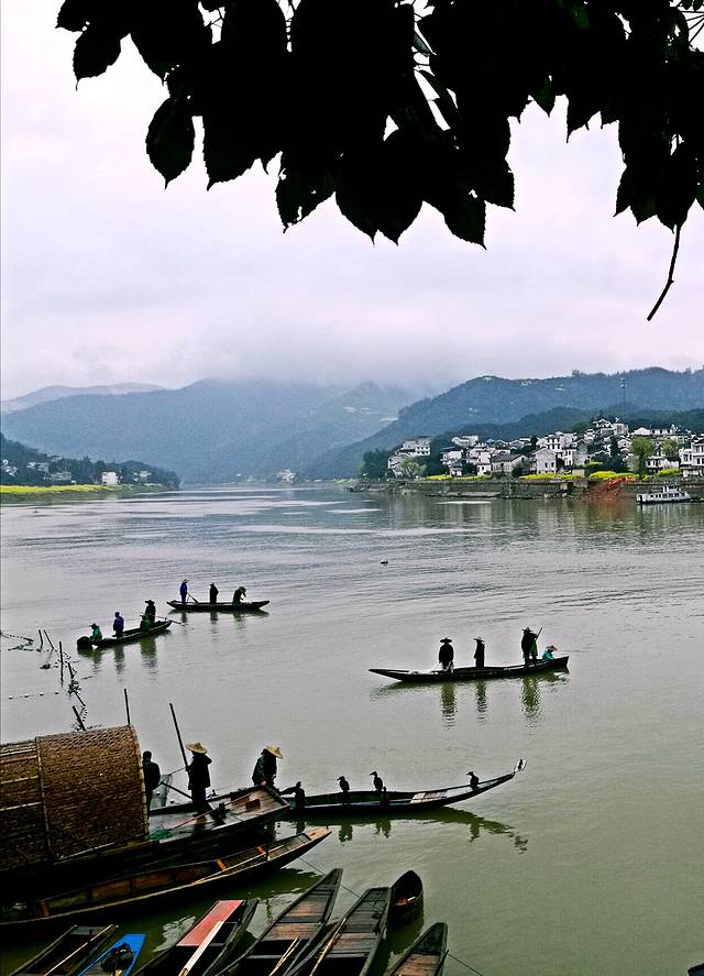 我们要乘船游新安江。新安江是古徽州文明的摇篮,新安江山水画廊两岸生态环境极佳,呈现高山林、山中茶、低山果、水中鱼的立体生态格局,与掩映其间的粉墙黛瓦的古村落、古民居交相辉映,是画里青山,水中乡村,构成一幅美妙的山水国画。每到一个景点我们都有不同的感触,第1栈是观看渔民们表演祭祀捕鱼。第2栈参观“千年古樟”古老的樟树。