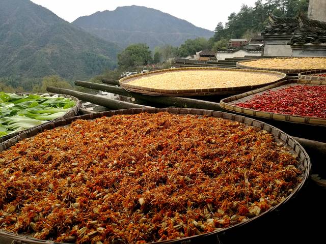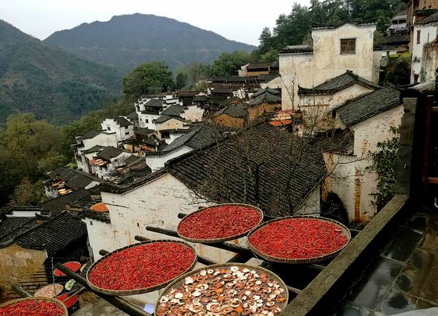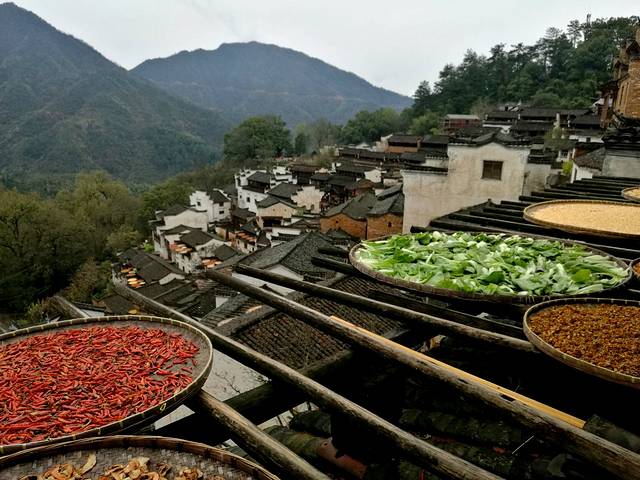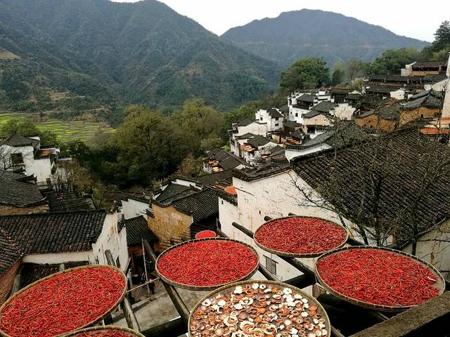 我们要到婺源篁岭风景区,婺源篁岭,一直隐世石耳山中,群山环抱,云雾缭绕,使其拥有了一份喧嚣之外的空灵绝美。典型山居古村落,周边千棵古树环抱,万亩梯田簇拥,民居围绕水口呈扇形梯状错落排布。乘坐索道或景区观光车高空揽胜、脚下千亩梯田风光无限;古村天街商铺林立,徽派建筑令人目不暇接,流连忘返。这里最大的特点就是房顶上家家都要用大笸箩红辣椒,绿蔬菜,黄色柿子,白色蘑菇等晒着,这就是有名晒秋。远远望去各种色彩形成一个多彩美丽的风景线,使人心旷神怡;走进篁岭,美景美食,山野风光,美不胜收,如痴如梦。