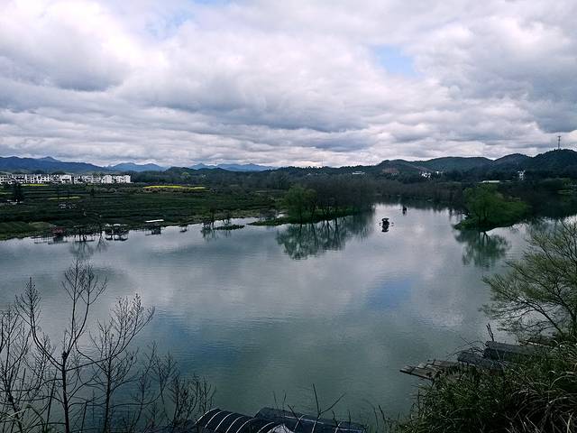 首先到了“月亮湾”景点,它是镶在婺源县星江河中的一颗“生态明珠”。 放眼望去一湾湖水如弯月,一弯黄绿的月亮静卧水面,袖珍的小岛,翠绿的湖水。