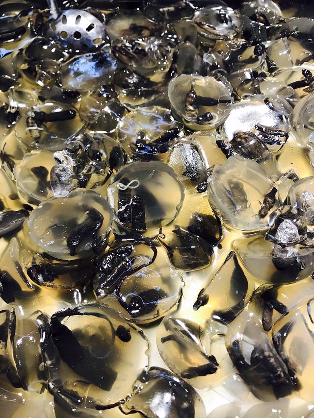 土笋冻,就是沙虫~反正我不敢吃,10元5个的样子