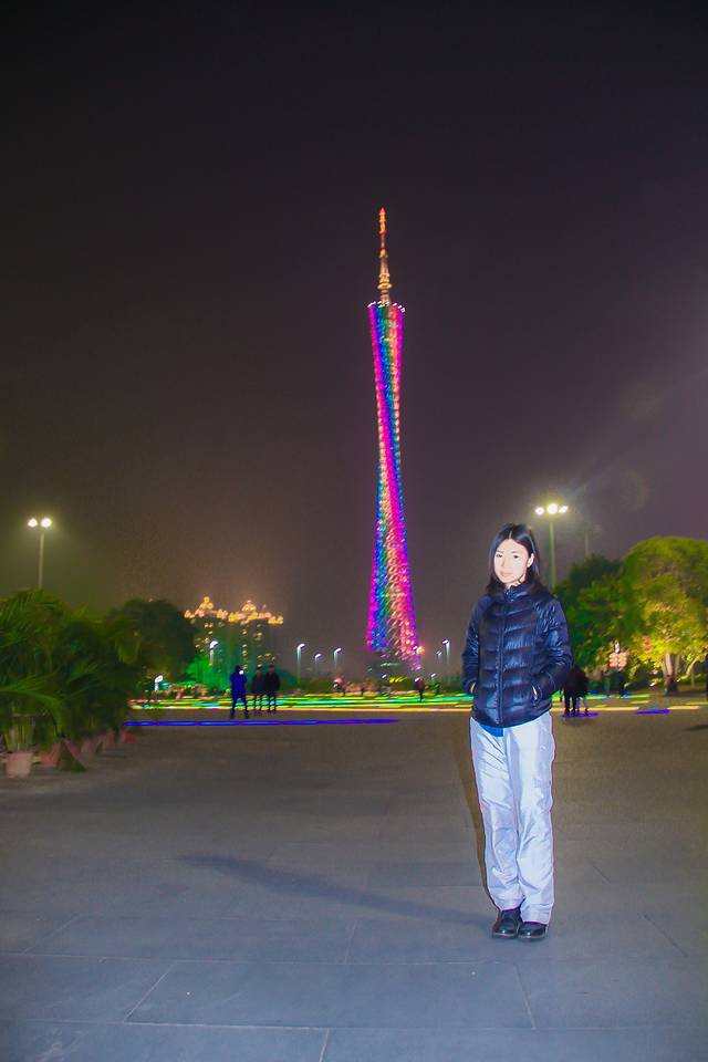 第七天 到达广州,因为生病一整天都在休息,晚上才有点精神逛了花城广场,请忽略我的服装,因为要保暖