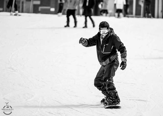刚进雪场大家都还比较兴奋,到处看,到处晃,先从最下面的初级滑道尝试着,我也举着相机东咔咔,西咔咔。