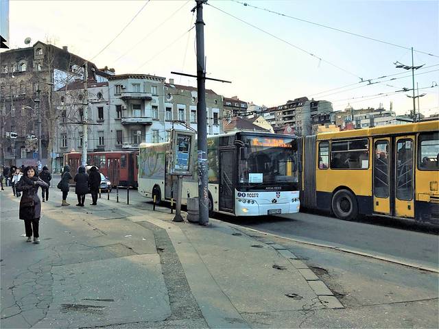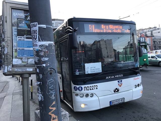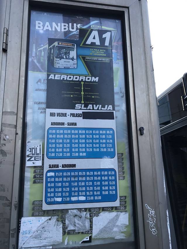 回到贝市先去踩踩点,看看MiniBus怎么坐。在斯拉维亚广场(SlavijaSquare)作为首发站,车站就在斯拉维亚酒店前(HotelSlavija),经过询问酒店的工作人员,他说这里每隔半小时就有一趟车开往特斯拉机场。