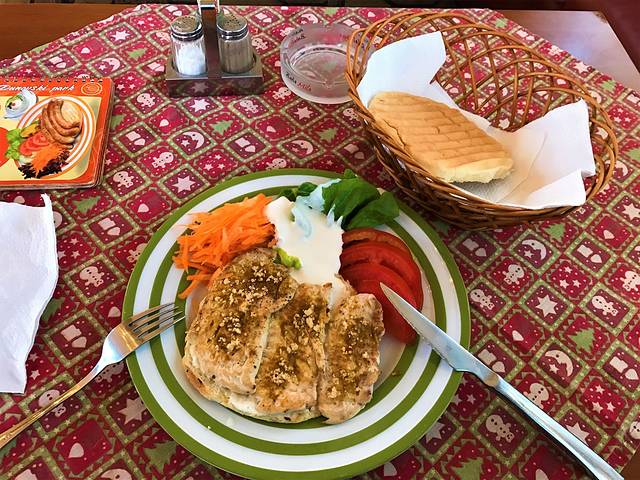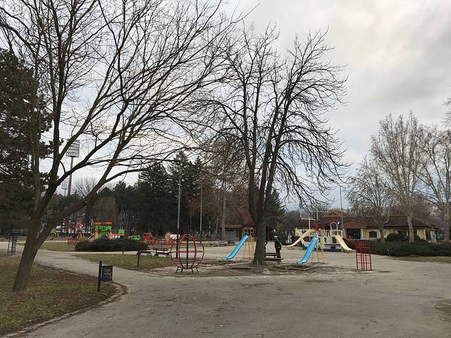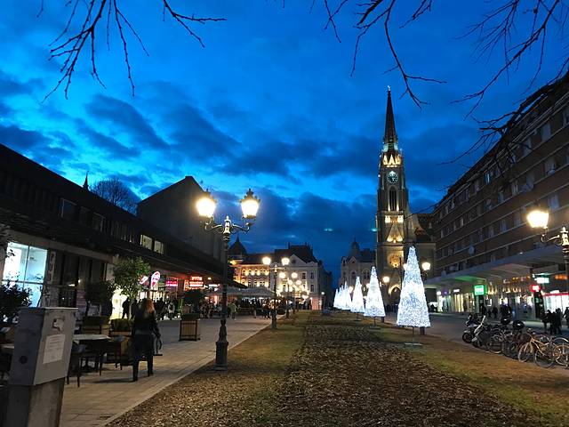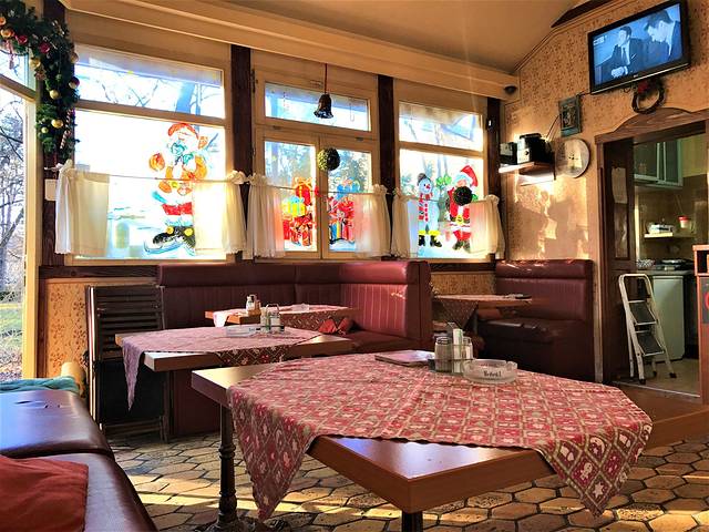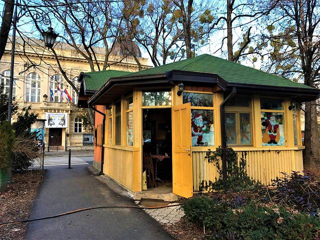 太阳开始下山,才想起原来自己还没吃午饭,回到自由广场附近的公园里找了一家小餐馆,店主只会简单的英文,但非常好客,点了一个他推荐的鸡肉汉堡。东正教的圣诞节是西历1月7日,已经过去一个月了,但这边的节日气氛还在。