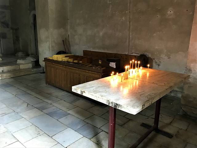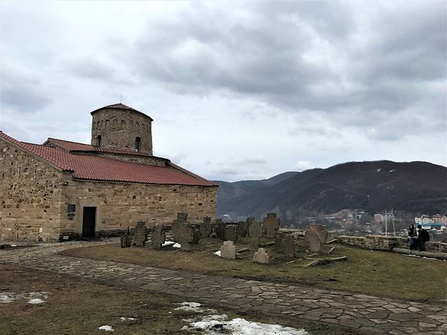 修道院位于山边,有一圆形围墙,分东西两门,我们基本都是从东门进入。中间是最大的圣母教堂,国王教堂在西南角,东面面对群山,视野开阔,西面背靠山体,并有一圈的建筑,作为日常起居用。