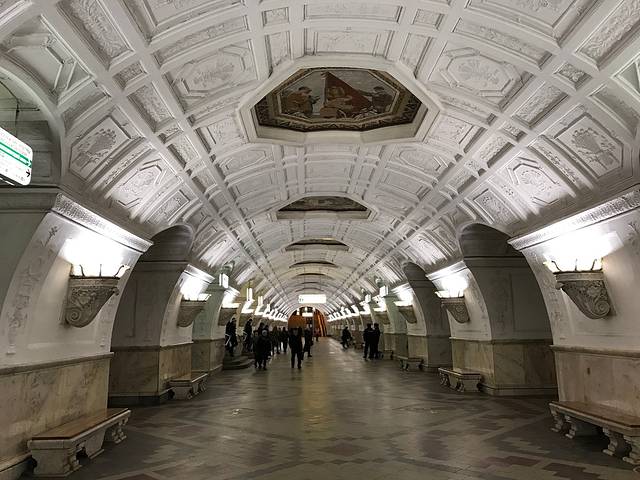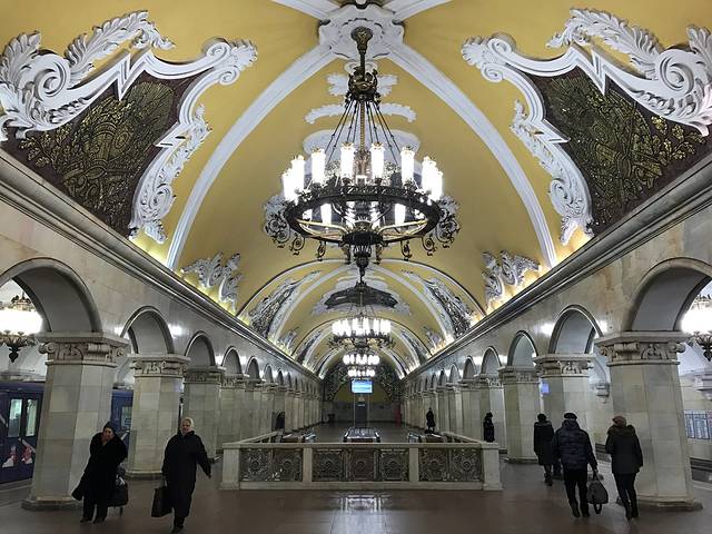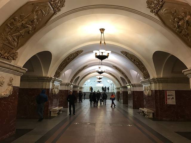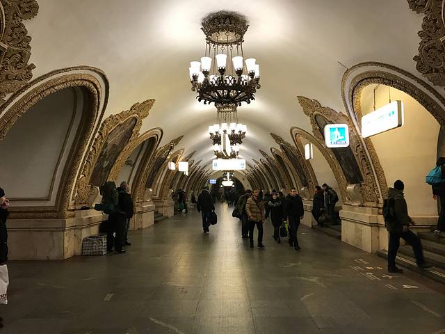 莫斯科地铁的华丽早有耳闻,但到了之后发现其实也不过如此,可能期望过高了。并且也没有传说中的那么深,什么要听一首歌,顶多半分钟就到了,果然还是眼见为实。