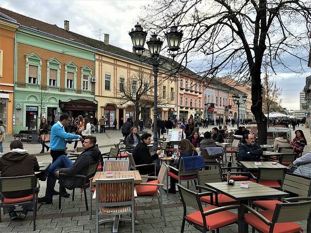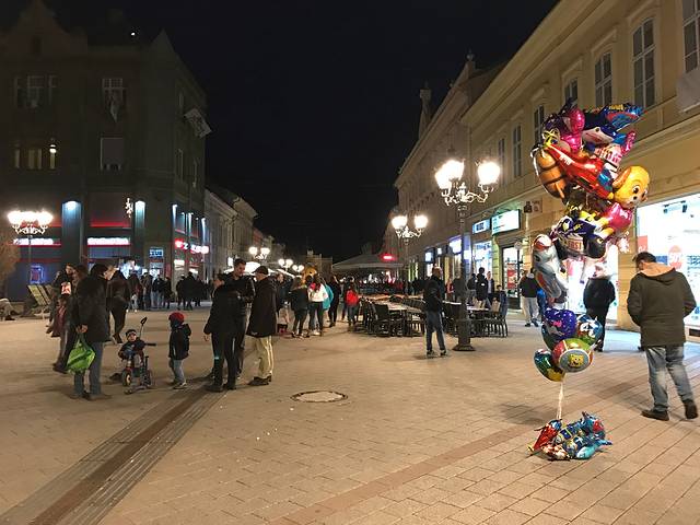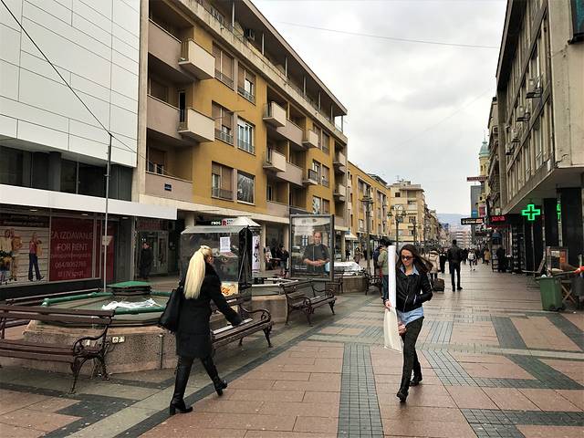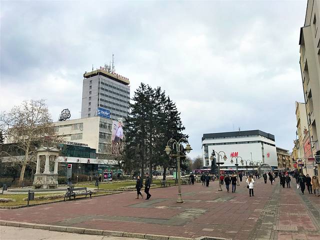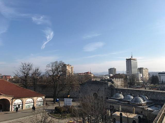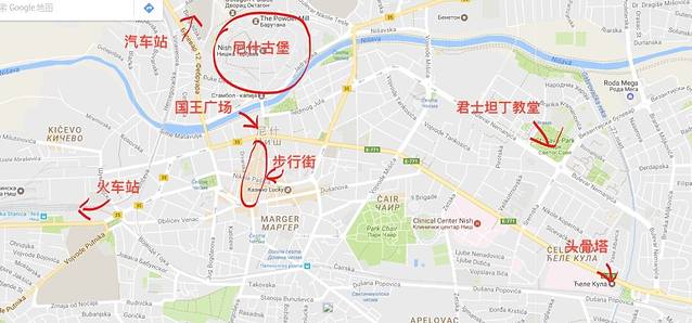 到达尼什之后还是先去旅店落脚,旅店就在主干道(E-771)附近,走十分钟就到步行街及古堡了。像大部分城市一样,尼什基本也是以古堡为核心辐射全市。古堡的西北部为汽车站,大门面向正南方,前面是尼萨瓦河(Nisava),直走便是国王广场(KingMilanSquare)和尼什解放纪念碑,再过马路便是商业步行街,一家很大的H&M作为标志。