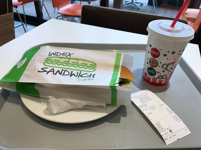 在步行街附近找了家快餐店吃早餐,一杯可乐折合人民币才2块多。