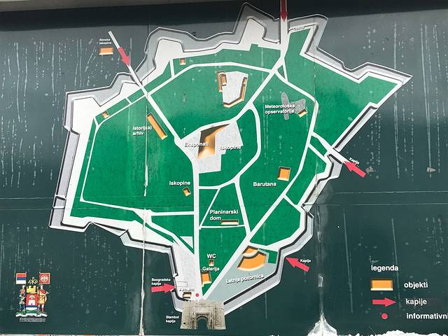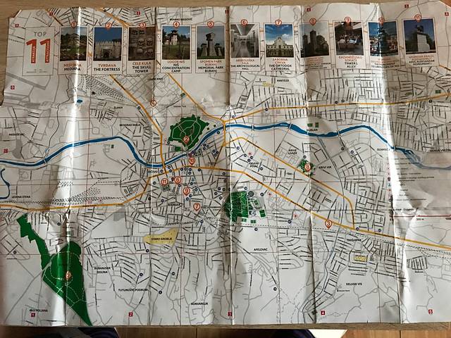 为了好好逛逛尼什这个历史城市,我决定再住一晚,绝对不是因为订不到贝市的酒店。早上在青旅翻出了一份当地的旅游地图,决定就按照这份地图去逛逛,后来发现在市中心也有这样一个地图,而且各个景点更加详细。
