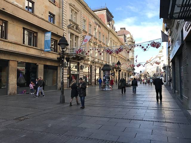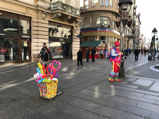 提早回到贝市,离跟小伙伴约定的时间还早,于是就往共和广场附近去逛逛。米哈伊洛大街链接城堡和共和广场,步行街全长约7、8百米左右,两旁都是商场,不过知名品牌倒没见到,感觉就像广州的北京路、南京夫子庙、上海南京路一类的标志性步行街。不过按照这段时间对塞的经济状况观察,那些什么L的、G的、C的品牌估计这边是没有的了,目的只是买买买的游客可能会失望了。