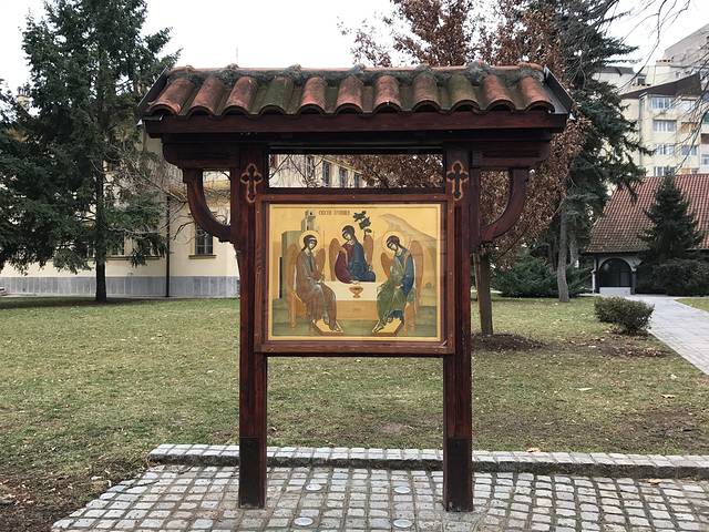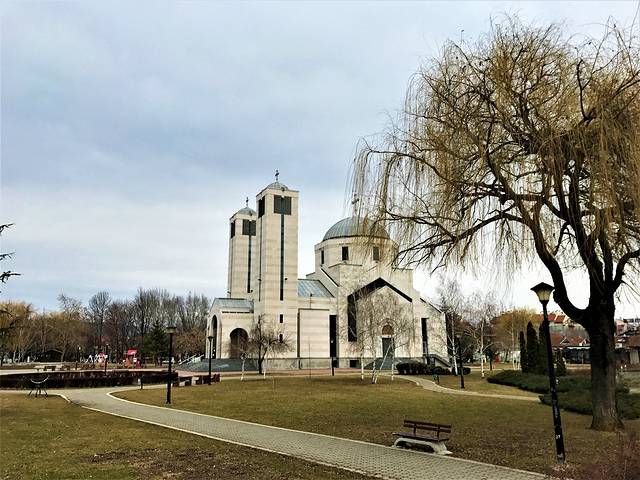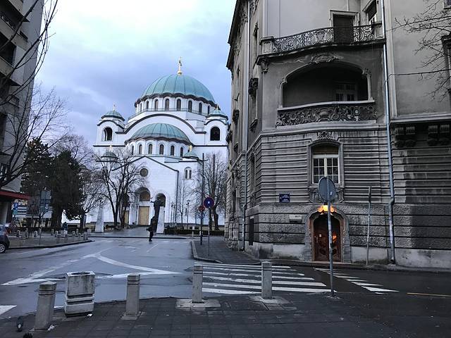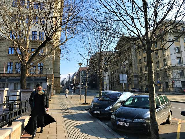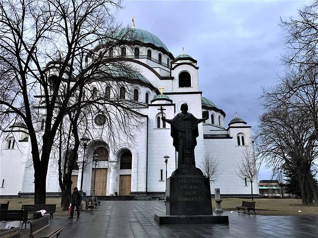 酒店就在教堂附近,一早起来就先奔向这个贝市的地标建筑。该教堂得名于萨瓦奈马尼亚,就是教堂前那个站立着一手拿十字架,一手拿圣经的人。也是他当年独自去君士坦丁堡找牧首建立塞国总教区。