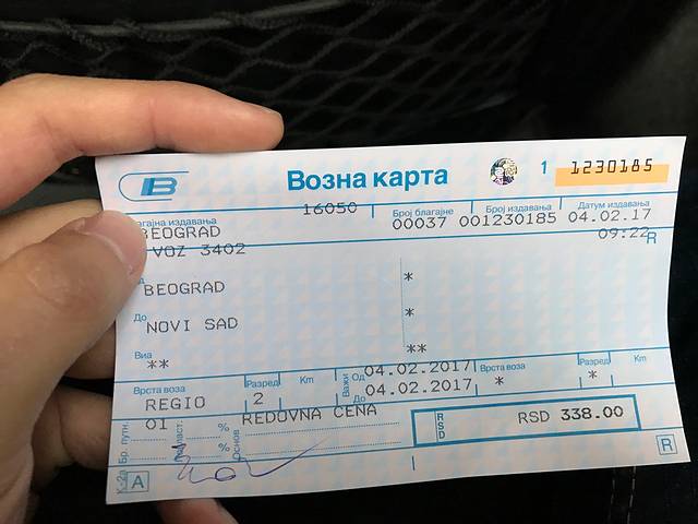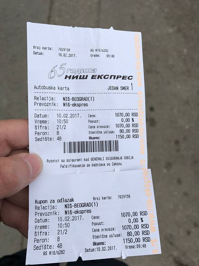 Tips:在贝市、诺市和尼什这几个大城市的车票是要先到售票处购买,进入车站时扫描车票下方的条形码入闸,贝市的是投专门的硬币,买票的时候会给你一个,别丢了。Peron是站台号码,Sediste是座位号,如果N的话则表示随便坐。