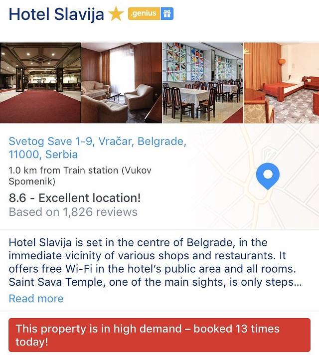 住宿:晚上住斯拉维亚酒店(HotelSlavija)单人间7000D/晚,后来在booking上看到一晚才两百人民币不到,这差距真是太大了……