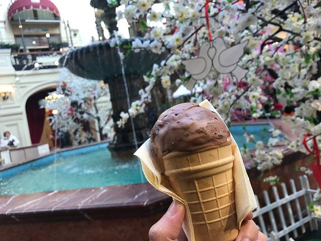 下面有很多卖冰淇淋的小店,十分便宜,好像才50卢布一个,外面冰天雪地,里面温暖如春啃雪糕。