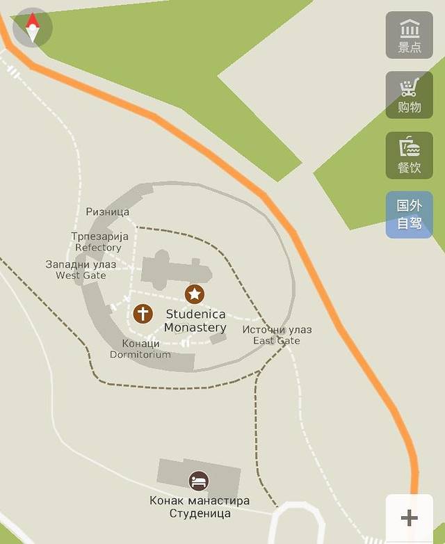 整个小镇非常小,甚至地图上都没有其中文名称翻译,没有汽车站,居民出入除了自驾车就是在镇口这个路边等在22号公路上来往的大巴车。而且我等了好一段时间,完全没有发现一辆有Taxi标志的车辆,估计就算有都是私人营运,就像载我的那个大叔一样,而我是幸运找到这人。但这也并不是进入修道院唯一的办法,我当时在路口隔壁看到一辆红色的公交车,良久才出去一趟,估计这里就是之前攻略里说的当地交通吧,但我没有去问具体的时间。