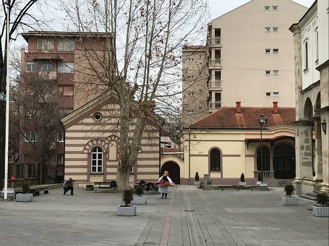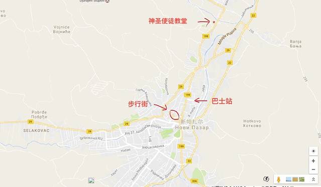 旅店就在车站隔壁,非常好找。放下行李趁天色还没完全黑,打开地图徒步走向第一个景点。神圣使徒教堂在新帕扎尔的东北角,就在进入市区的主干道边上,离汽车站大概两公里左右,我走了半个小时到达。