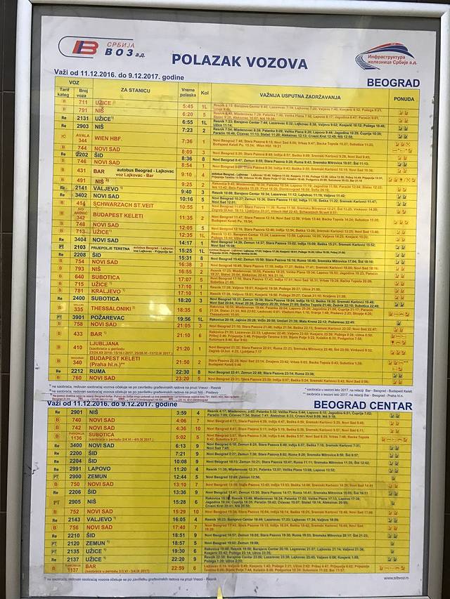 Tips:到诺市坐的是列车,338D。本来的计划是一早出发去苏博蒂察,晚上赶回诺维萨德的,但到达火车站看到时间表到达苏博蒂察的列车是晚上才发车,所以放弃该想法直接买了去诺维萨德的车票。后来仔细看才发现原来去WIENHBF(维也纳中央火车站)和BUDAPESTKELETI(布达佩斯)的列车都会经停苏博蒂察。不过幸好当时没有坐上这几趟列车,毕竟我坐了差不多两个小时才到达诺维萨德,当时已经中午了,如果是要到苏博蒂察,估计都晚上了,啥也玩不了。