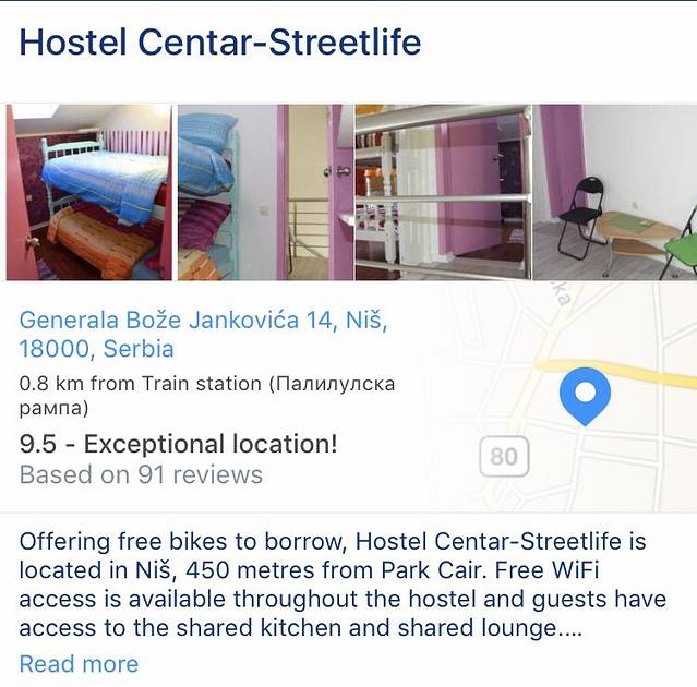 旅店就在自由广场附近。当时登记的小哥还一直聊说是不是中国跟塞尔维亚免签了,因为前几天也有一个中国女生来到他这里住了几天。当时心想,原来已经有这么多前辈过来了啊。