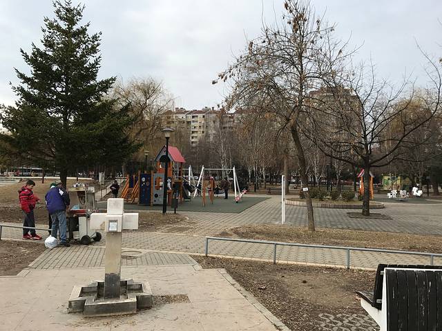 这座教堂则建于1999年,周围建成了一个公园,有很多小孩老人在这里玩耍。