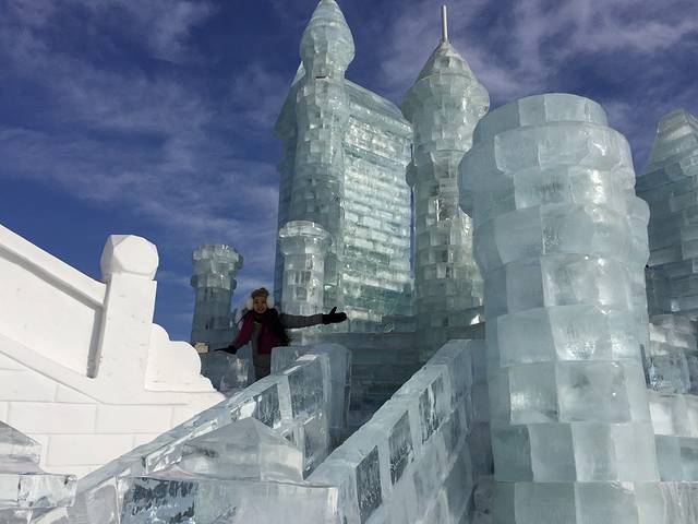 我们到哈尔滨的时候,升温了,大概零下8-9度,也没有下雪,所以跟我们想象中的不一样,没有雪的城市。来到了太阳岛,才算感受了冰雪世界
