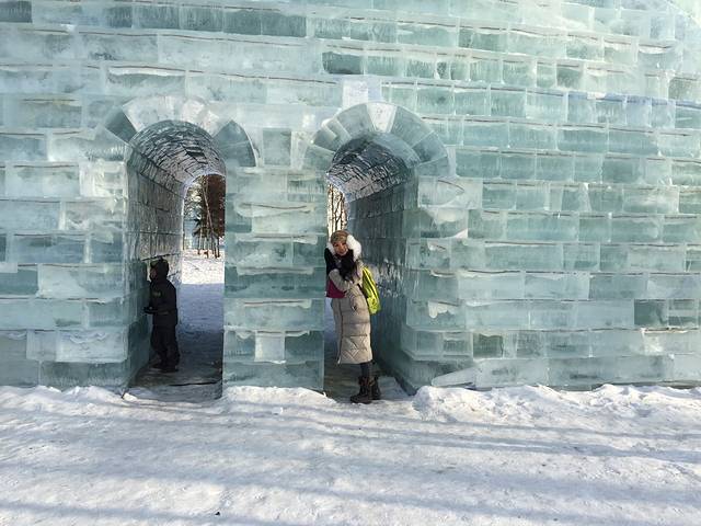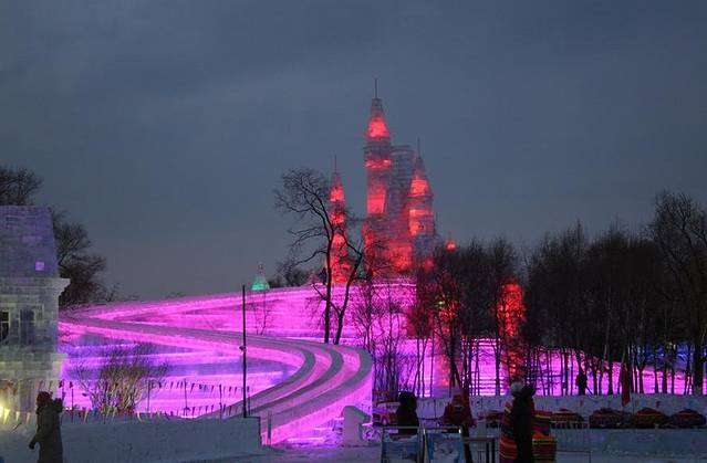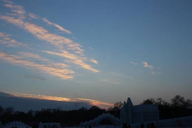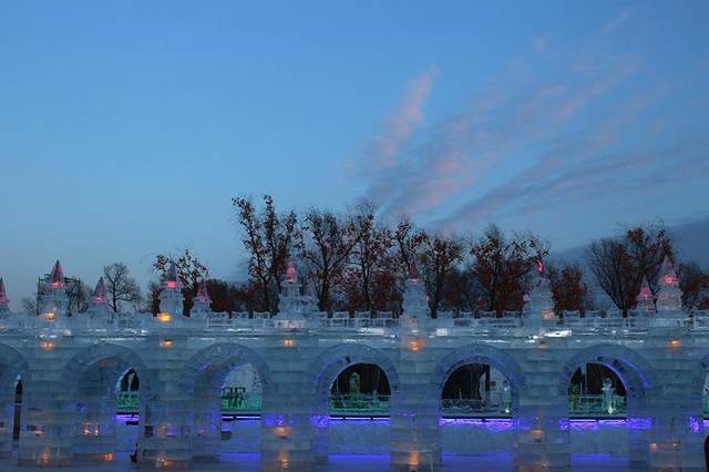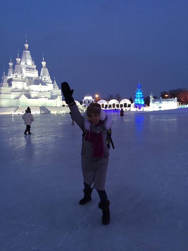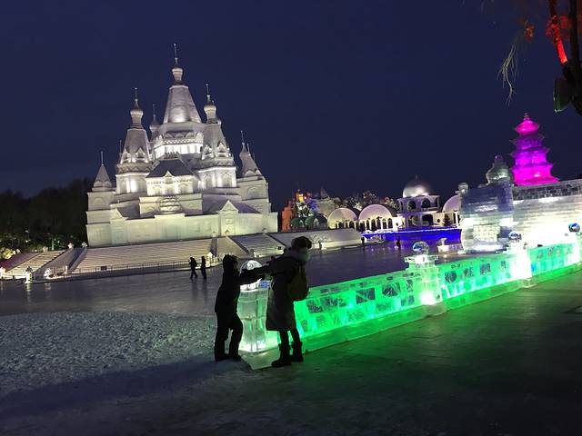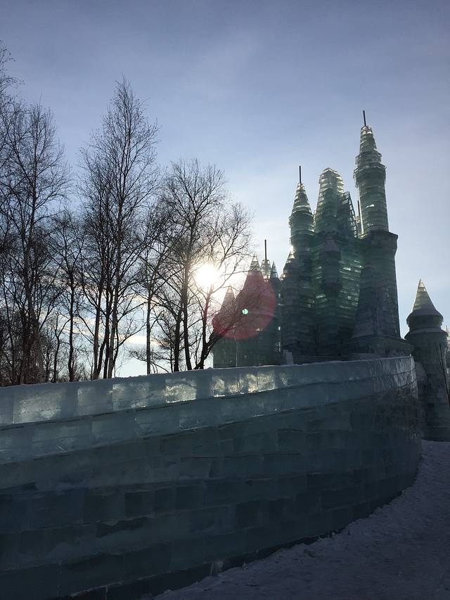 想看晚上冰灯亮的时候,所以在太阳岛呆到日落,灯全亮起来,非常梦幻。
