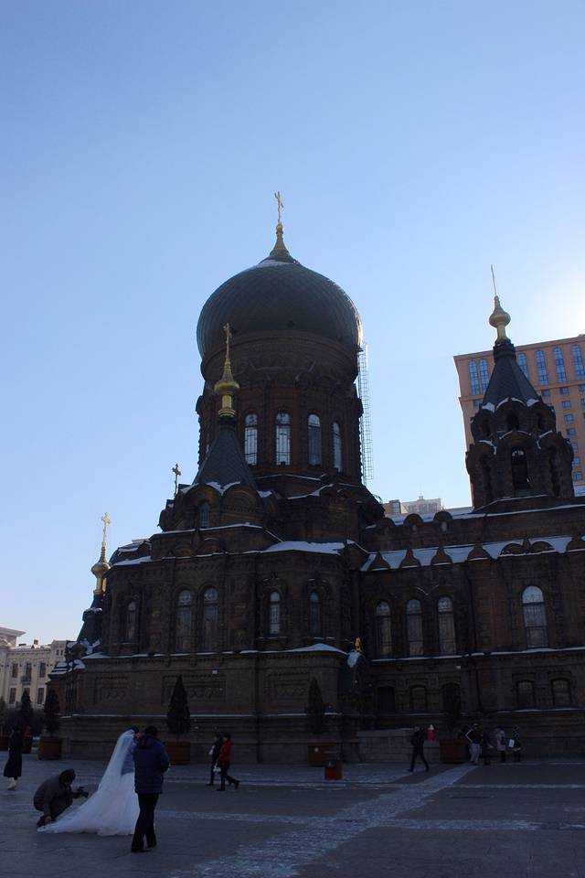 一路逛着就走到了圣索菲亚大教堂,教堂门口有好几对新人在拍婚纱照,那么冷的天,无袖裙,厉害是厉害的,我看着都觉得冷,在摄影师找感觉的空挡,新人赶紧披上厚厚的棉衣,摄影师说好,她们就脱下来,赶紧拍几张。