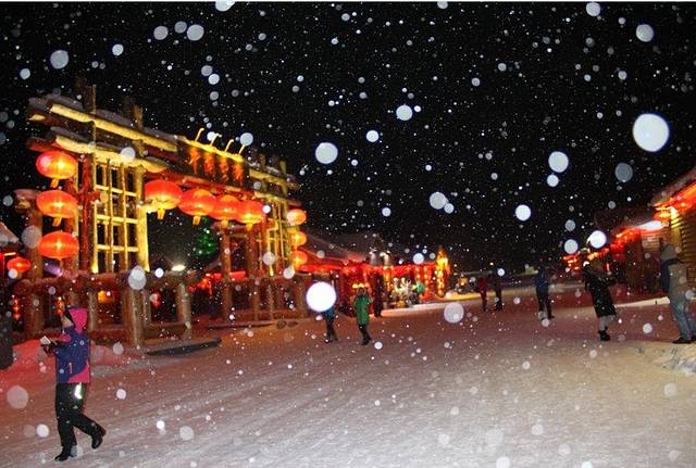 雪韵大街灯火通明,游客不多,但人人脸上都是喜气洋洋,开开心心