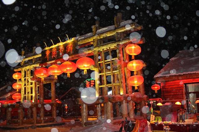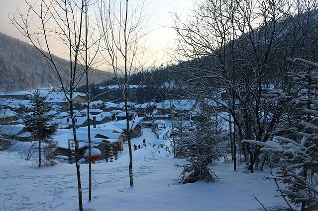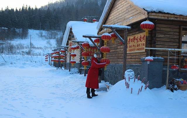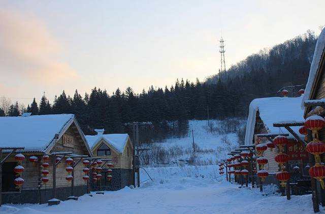 傍晚的时候到了雪乡,雪乡就是雪韵大街那样280米,年前人好少啊,到处都挂着空房的牌子。