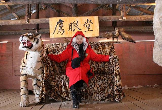 这个地方是座山雕,智取威虎山里面那段的老巢,我也来坐一个,霸气哇