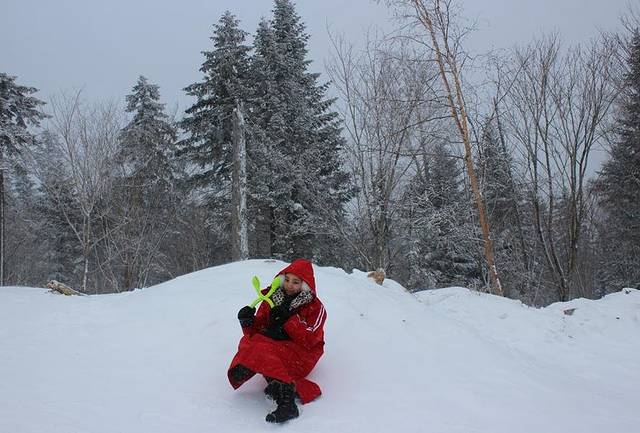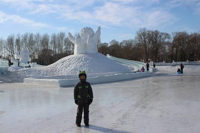 我儿子身后的就是他最喜欢的冰滑梯了,不知道滑了几次