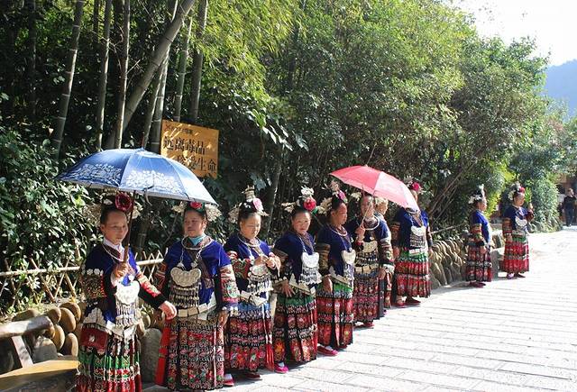 DAY4我们是多变的女人,临时改变了行程,决定不会贵阳,直接去黔东南西江千户苗寨,给司机1200,从荔波去苗寨,外加住一晚,最后一天送我们去机场。从荔波去苗寨2个多小时的车程就到了。上午9点半出发,12点到了雷山市区,吃午饭,一大桌才180,很便宜很好吃,不包车的朋友可以坐火车到都匀,在打车去苗寨就很近了,也有直达大巴。