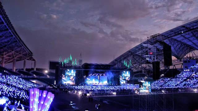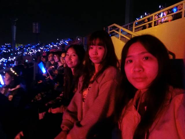 26号中午2点的时候才开始离开香港,到广州的时候都快6点,演唱会6:30开始。我们到住的地方把行李放下后就匆匆打车到广州大学城体育中心,然而因为演唱会在离体育中心1公里多封路了,三个人和疯子一样下车跑过去,在学校体测800米有一半是走的我从来不知道自己可以跑这么快。