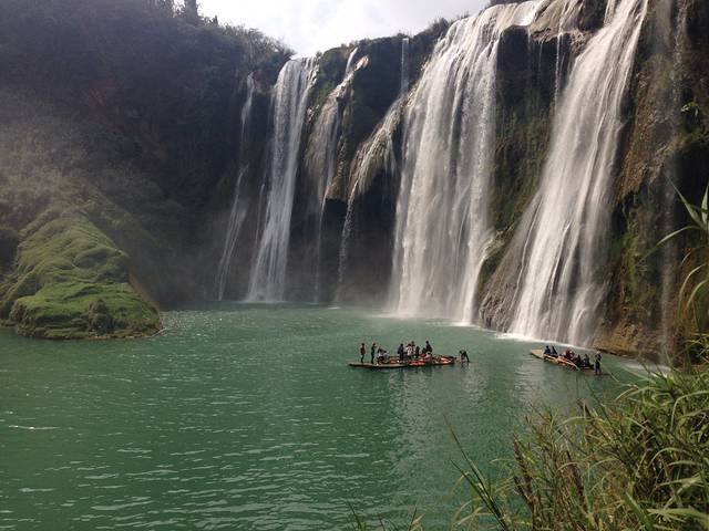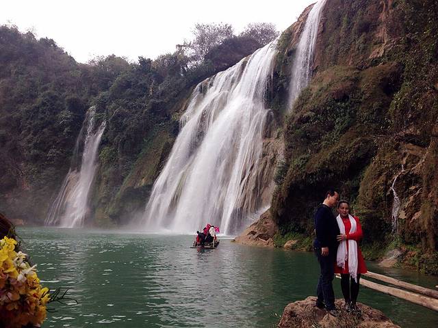 说说九龙瀑布群吧,景色还是不错的,值的一看,2月份的时候还不是雨季,但是里面的水流还是蛮大的,而且很清澈,可以坐着竹筏游一圈,我这一圈指的是单个瀑布群哦,它里面有2个瀑布群是可以坐竹筏的,其他都只能在旁边观赏!