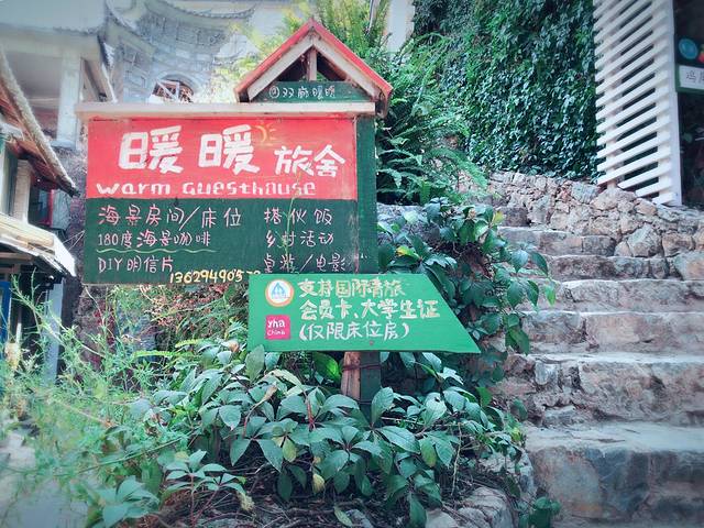 暖暖是双廊的又一个地标,住宿餐饮皆有,可拼床位亦可搭伙吃饭,整体氛围超赞,有家的感觉,店如其名,让人感觉暖暖的。床位房是40-50元/晚,海景房间价位在500元左右,立于阳台即可看到整个洱海,视野开阔,但并不临海,距离洱海走路5分钟,其实不远,搭伙吃饭一般是25元/顿