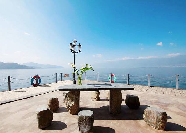 半月拖蓝还提供了户外休息区,洱海边的石桌。我们将喝茶定于此地(可见下图)
