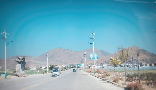 在机场去往双廊的路上,我发现当地路灯除了安装太阳能面板,还装了风力发电机,毕竟大理也有另一个称呼——风城