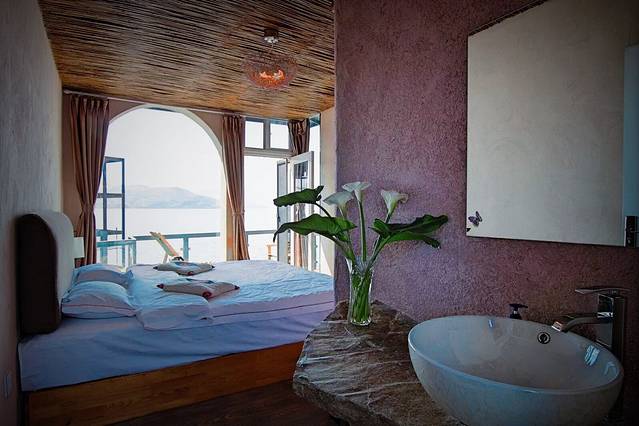 我预定了两楼的房间,有个小阳台有处榻榻米,打开房门便是洱海,房价一晚560元