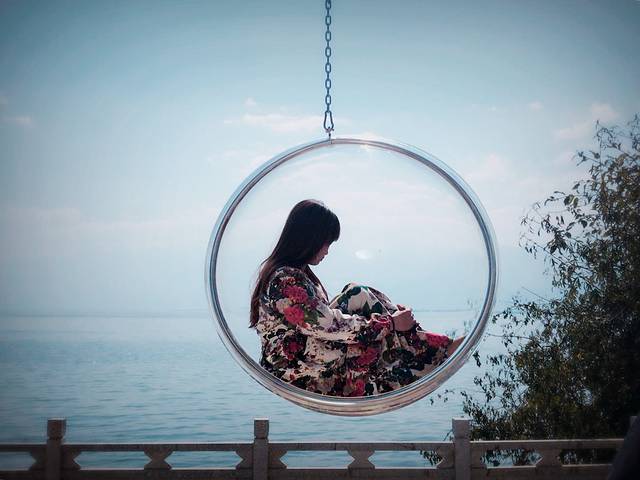 这个大玻璃球位于海地生活隔壁,由一根铁链吊在铁架上,想拍照的菇凉可以到球里;此处收费5元/次,摄影师是一位老大爷,好似并无什么特点,我见过他拿手机拍照,亦见过用相机。可能吧大爷是用我们的设备拍照的,省去后续传照片的麻烦……