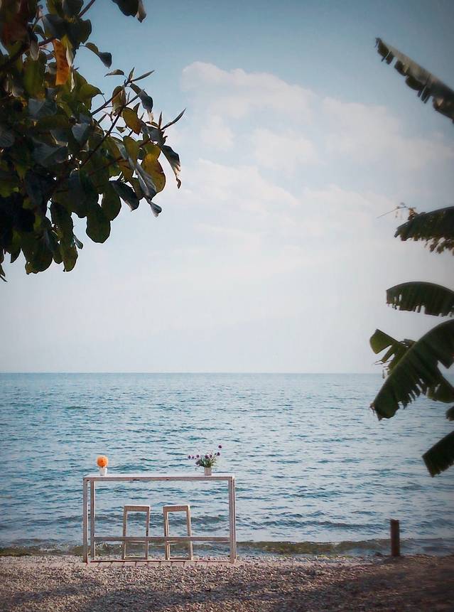 坐在户外喝茶,吹着海风晒着太阳,整一个舒坦了得