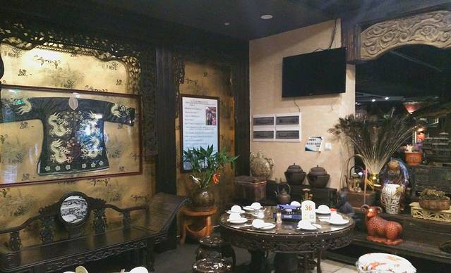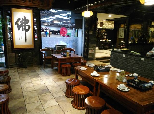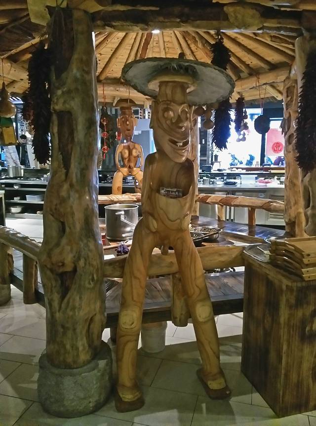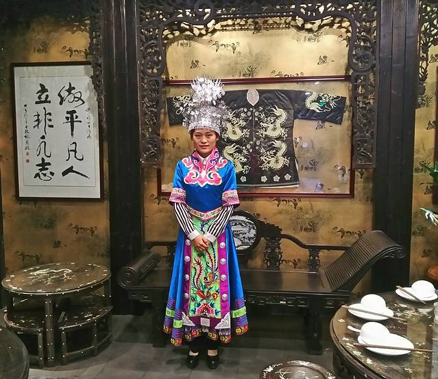 餐馆里面的布置看得出是很精心的,细节都设计得很精细,处处突出瑶家的文化特色。有几个分区空间,各有不同特色,不同的文化侧重。