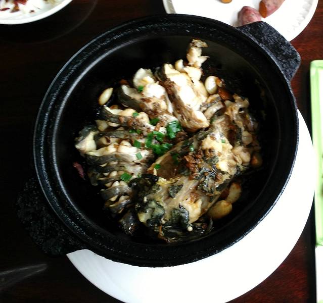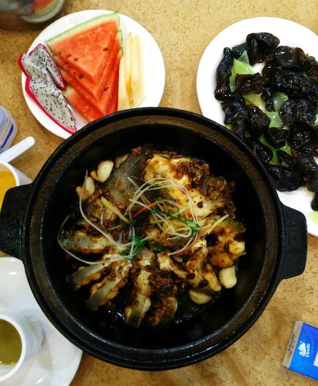 桂林的旱蒸剑骨鱼很有特色,很多家餐馆都有卖。我们在解放桥附近的餐馆和七星路的小南国餐馆都品尝了,肉嫩味香,味道都不错。但小南国的更实惠,一条一斤多的鱼蒸一砂锅才49元,而解放桥的餐馆是一斤48元,一条鱼都在1斤半以上。