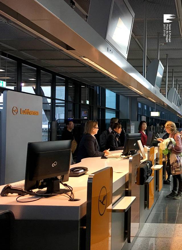 里斯本机场非常之大,我们昨天已经在手机端上,把今天的汉莎航空值机选位完毕。提前24小时哦~汉莎~~~~