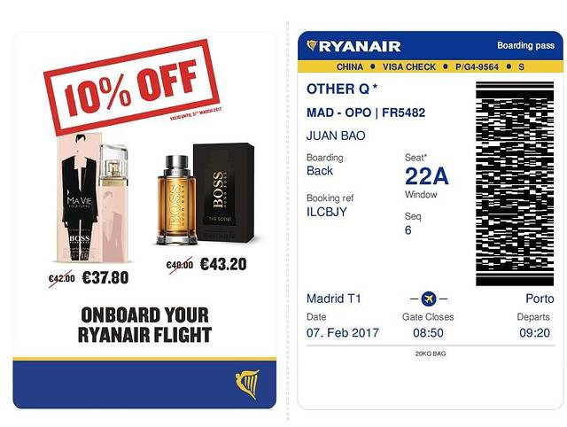 因为被葡萄牙航空改了,所以被迫从新买这段。瑞安航空是西班牙的廉价航空,控制行李非常的严格。官网购票,价格原本最便宜,但是行李票价格比座位还贵。好在提前20天,还能买到这样的价格,很欣慰了。官网注册会员后购买。当下就出登机牌PDF会发你邮箱,必须自己打印带着。
