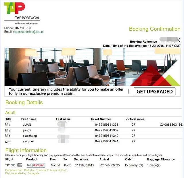 2016年7月份就买了这趟,当时买的时候,葡萄牙航空还不是廉价航空,机票是含行李23K和餐饮的,而且,官方网页还有中文版,就是支付略困难。前后用PALPAY和VISA支付了1个多小时,才定好7张票。