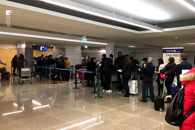 上图是安检过海关后,在里面的退税公司,篮联没有人,另外一家就长队。。