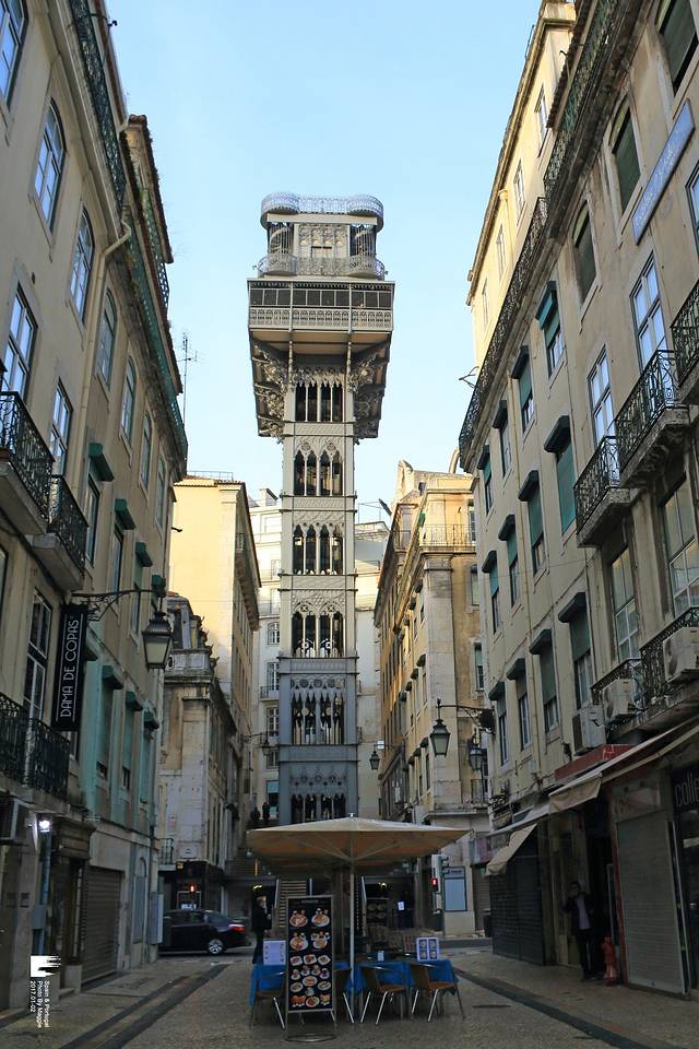 圣胡斯塔升降机又名卡尔穆升降机(Elevador do Carmo),1902年7月10日向公众开放,是里斯本唯一向公众开放的直上直下的电梯。 圣胡斯塔升降机的设计者是工程师Raul Mesnier de Ponsard,升降机始建于1900年,完成于1902年,原本使用蒸汽动力,1907年改为使用电力。 这台钢铁升降机高45米,新哥特式装饰,每层不同的样式。通过螺旋楼梯可达顶层,有一个阳台,是一个欣赏里斯本街景的好地方,它设有两个升降机笼,均为木质内饰,最多可乘载20名乘客。